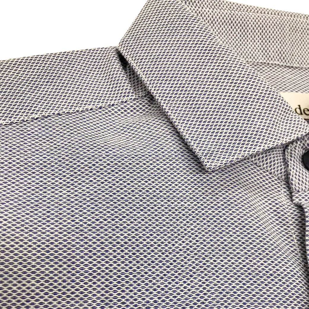 ナチュラルなストレッチ感と、シワになりにくい機能を併せ持ったシャツ。また、独特な表面感であることから肌離れもよく、ドライタッチなため、夏にも快適に着用いただけます。