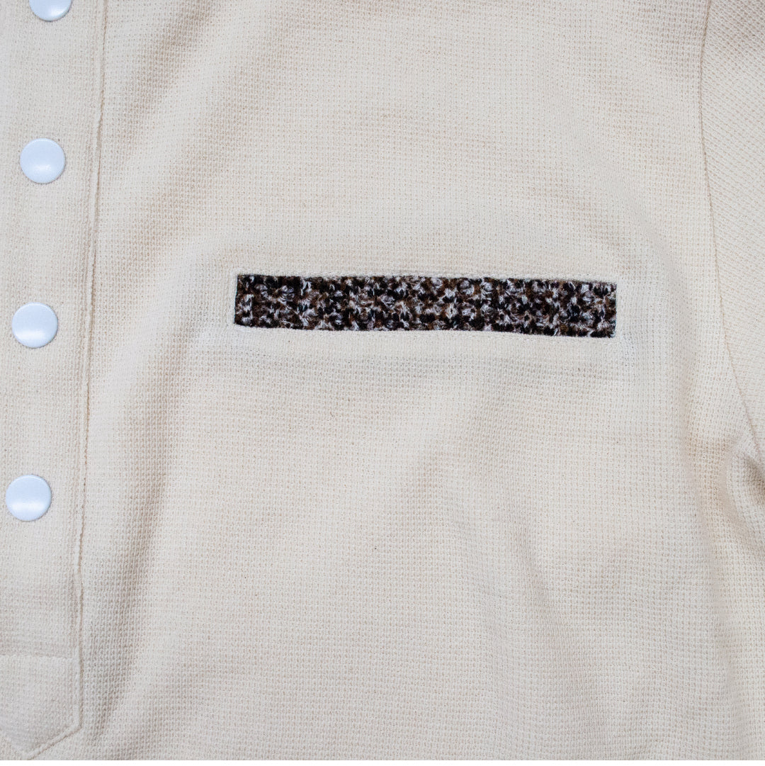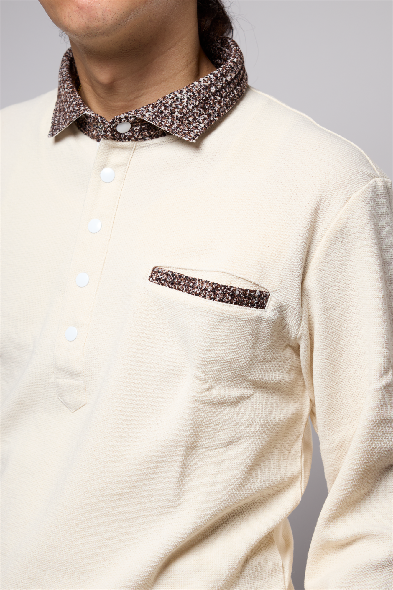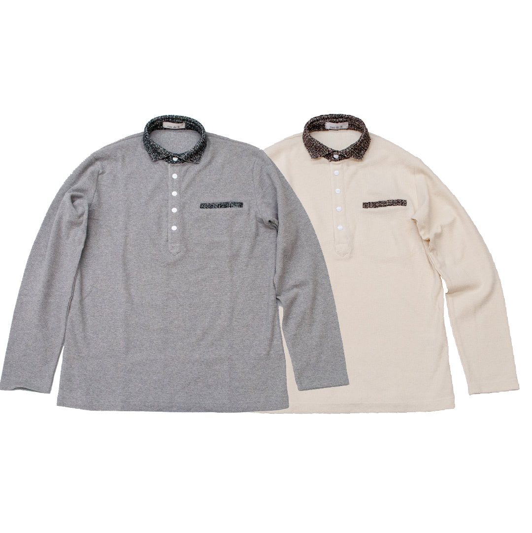 サーフニット特有の微表面変化で、さらっとしたタッチが特長的な素材を使用したラガーポロ。その主素材に、独特な凹凸感のあるライトなワッフルフリースを衿や胸ポケットの玉縁等に異素材コンビをし、デザイン性をよりアップさせています。