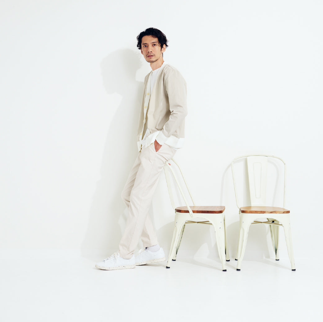 軽く、ストレッチ等の機能もあるため、リモートワークやお出かけ着に至るまで幅広いライフシーンでの着用が可能で、何にでも合わせやすいマルチなコーディネート力の高さ等もポイントな一品。