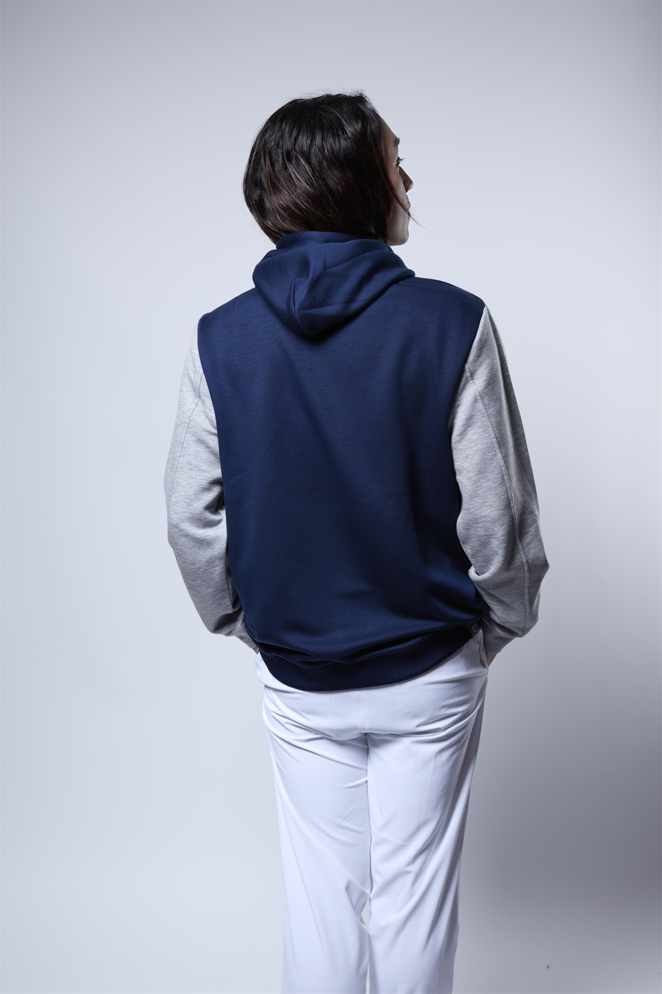 デザインに関しては、肩ヨークから袖にかけて、また裾部もカラーのコントラストを付けているため、スポーティー、且つ立体的なデザインに落とし込まれています。