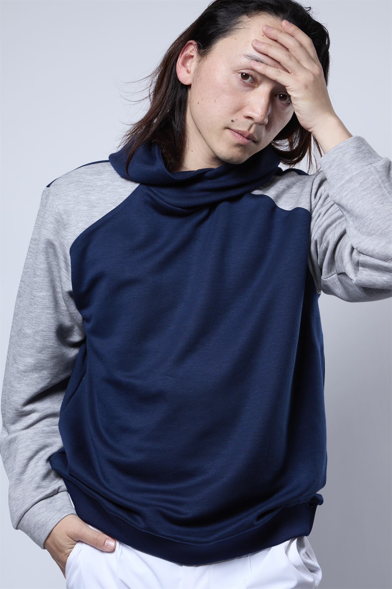 素材の特長としては、ダンボールニット素材であることから、①軽さ②ソフトタッチなハリ感③上品な光沢感等が感じられます。また、素材の特性上、天候不順な日が続きやすい秋のシーズンでも、様々な天候にフレキシブルに対応可能なアイテムのプルオーバーパーカー。