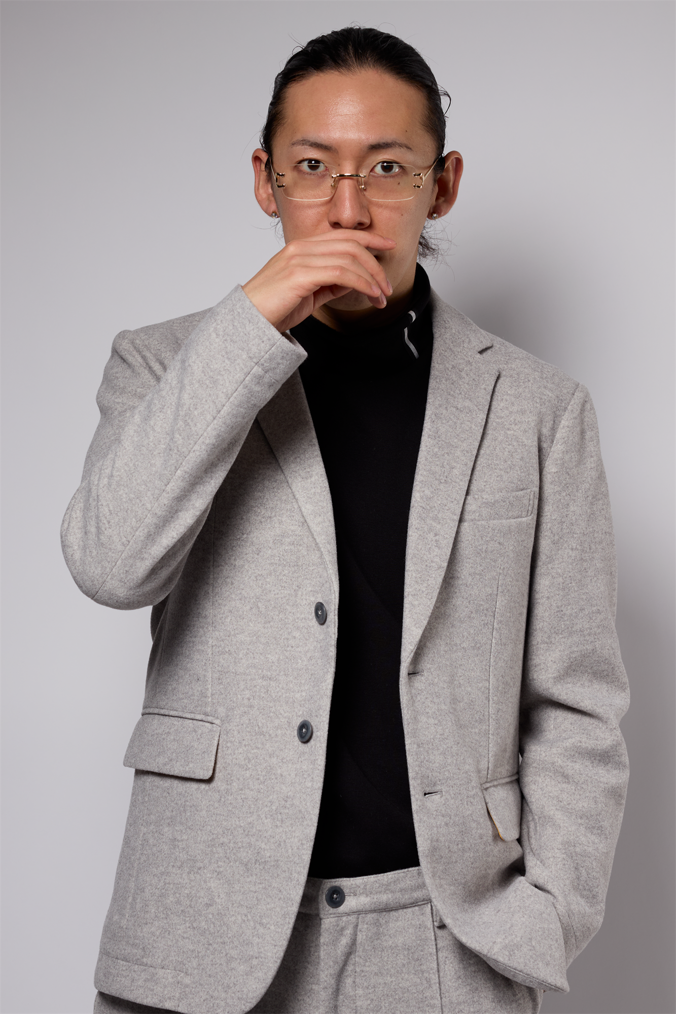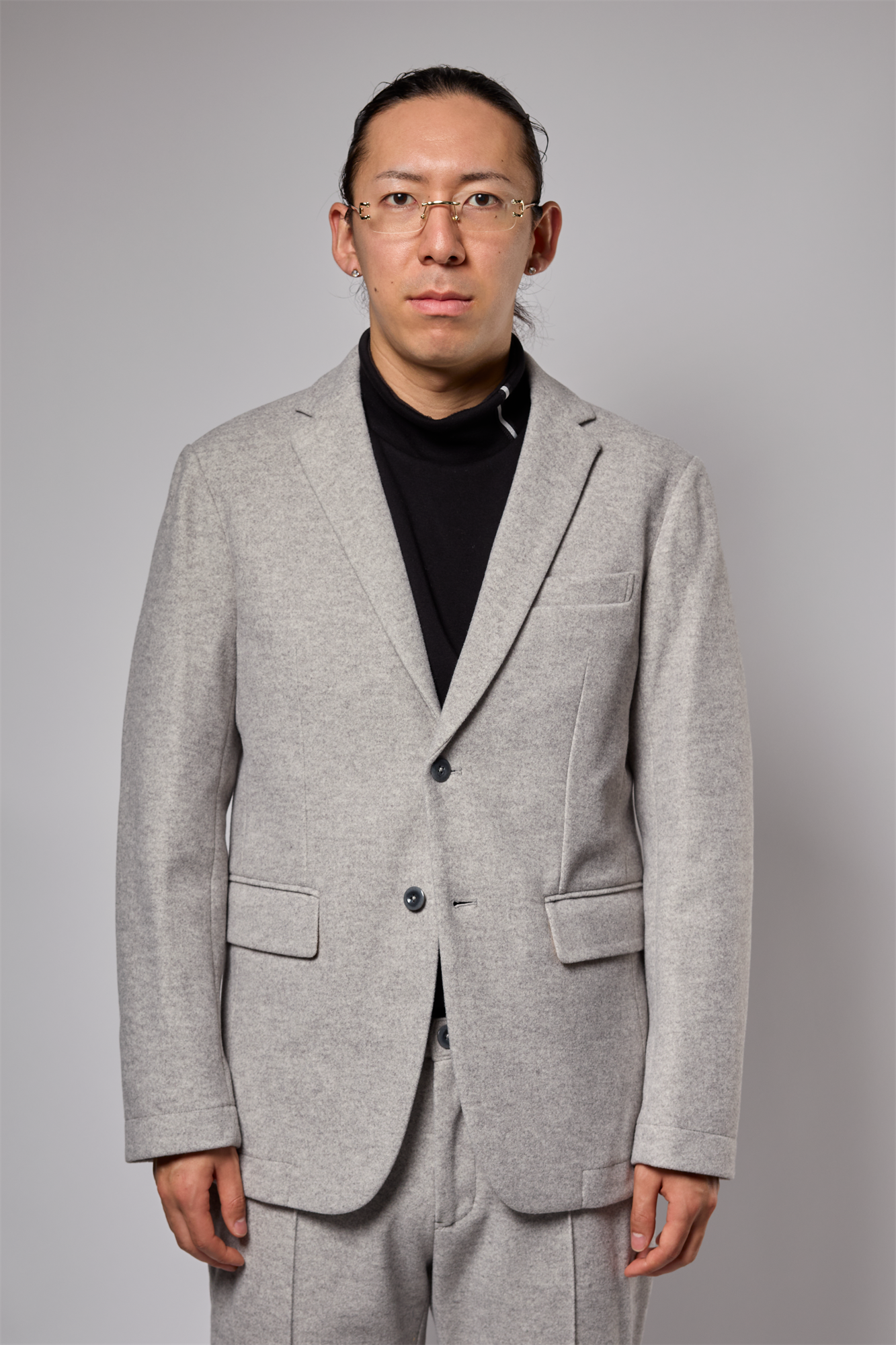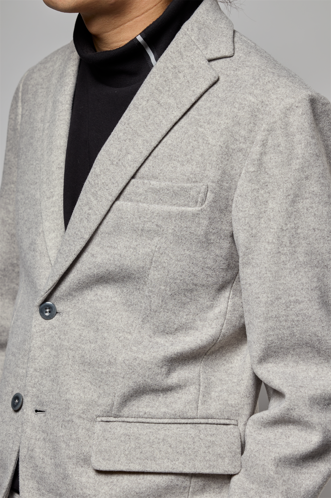 ダブルニットの生地にニードルパンチ加工をする事により、モッサの生地の様な膨らみと高級感のある素材になっています。ニット素材の為伸縮性と着心地が抜群です。イージーケアにもなっております。