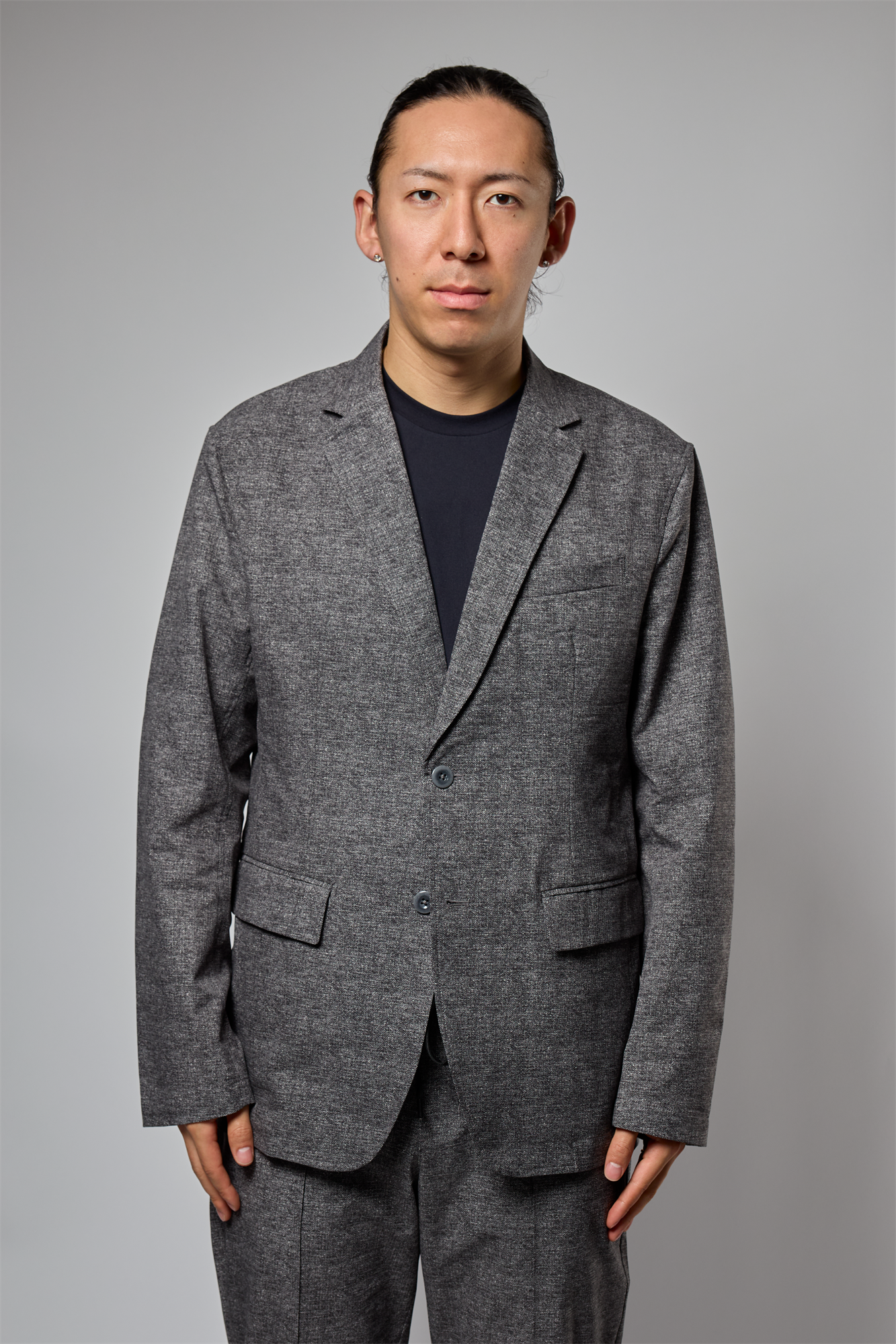 植物由来の糸を用いた生地に、独自の後加工を施すことで伸縮性と捲縮性を最大限に引き出した、ストレッチ性にとんだ環境負荷型素材です。優れた吸水性と通気性、で衣服内の温度の上昇を抑えます。