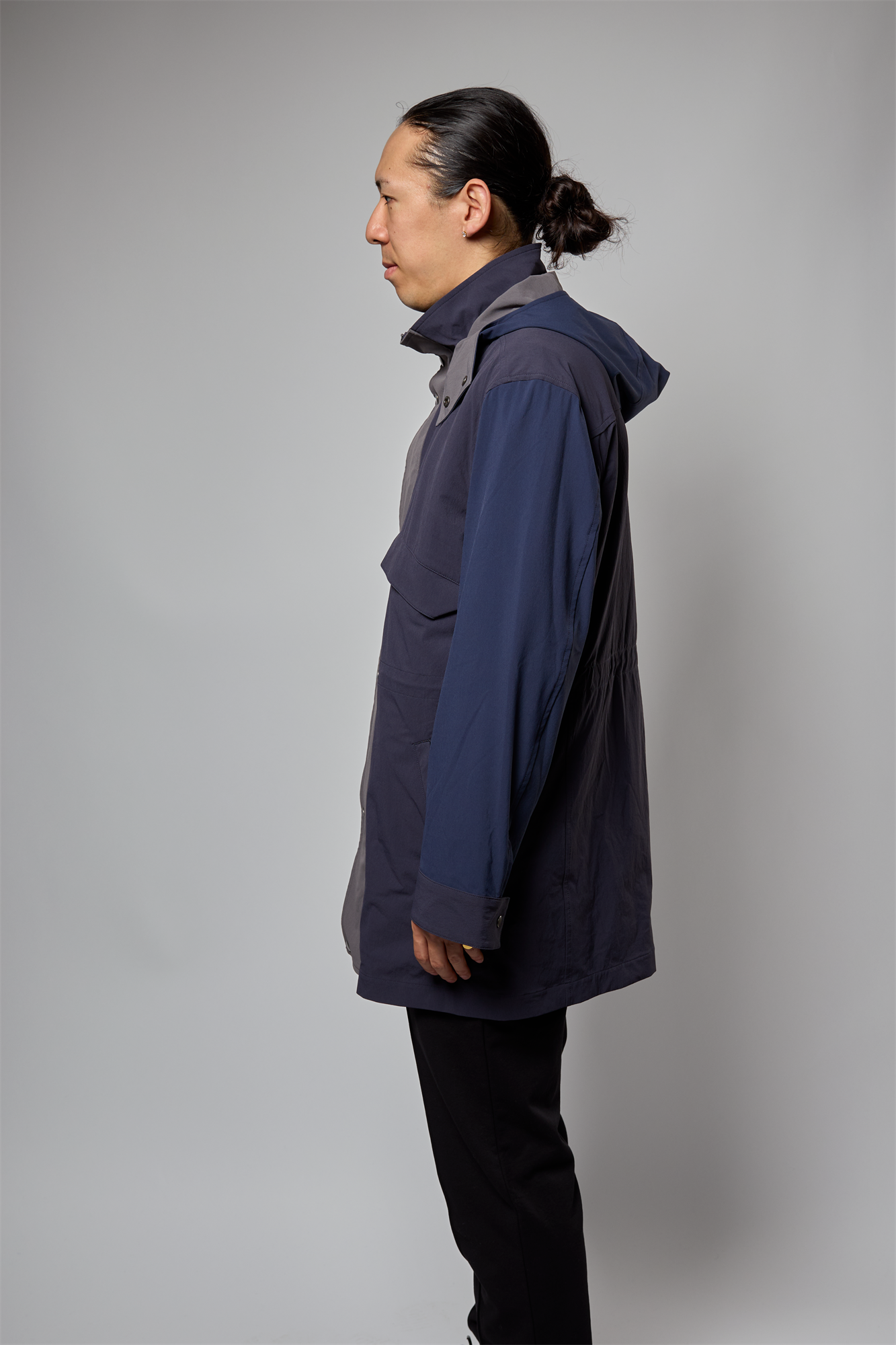 着丈はミドル丈(着丈設定 M:84cm/L:85cm/XL:87cm)なため、ジャケットやブルゾン等のあらゆるアウターもインして十分着ていただけますし、脚さばきも良いちょうどいい丈感となっているため、OFFのシーンにとどまらず、ON(ビジネス)のシーンでも活躍してくれます。