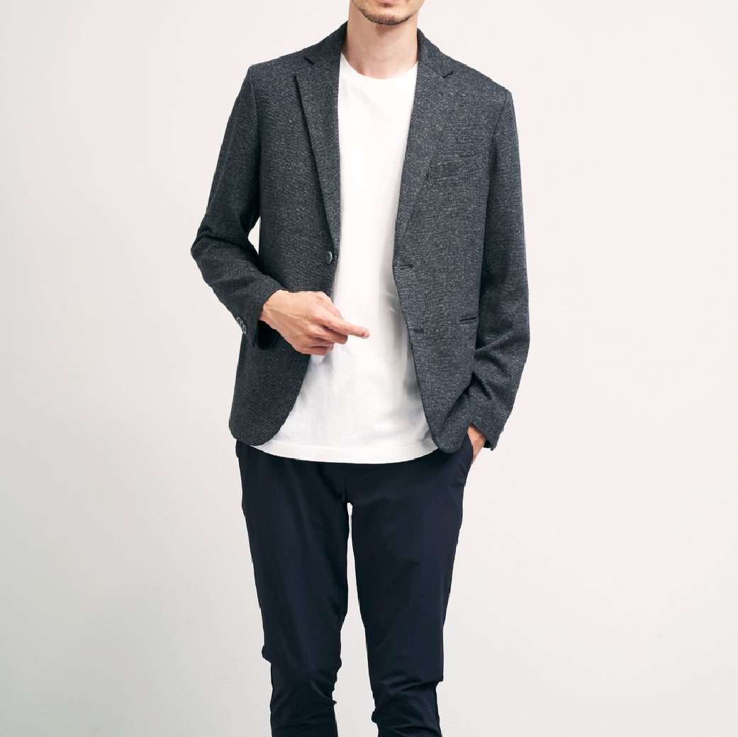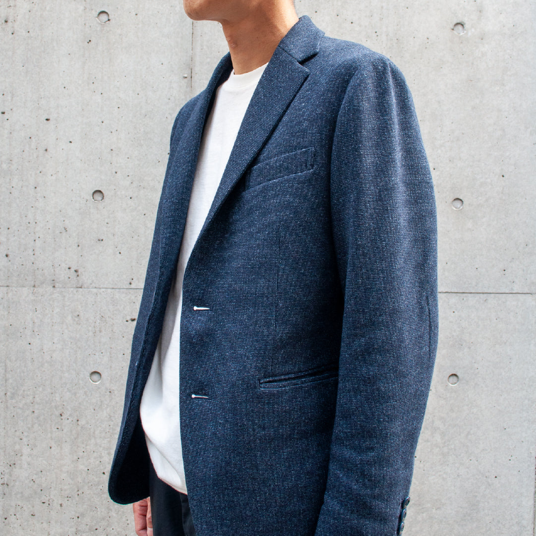素材の特性でありますソフトな風合いに加え、適度なストレッチ感と軽さがジャケットアイテムにマッチ。