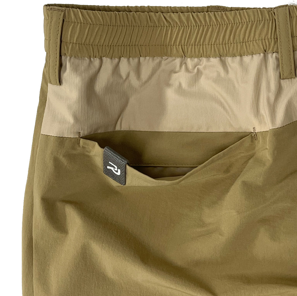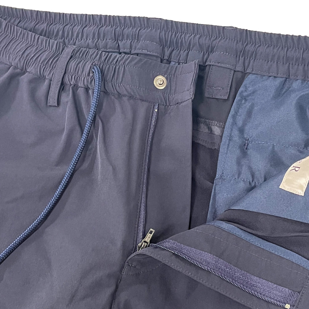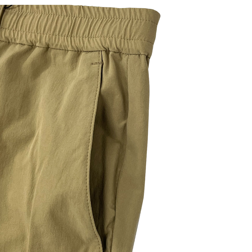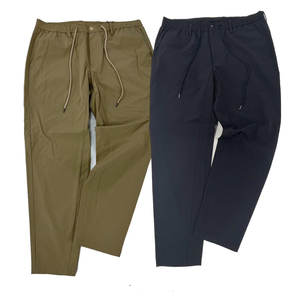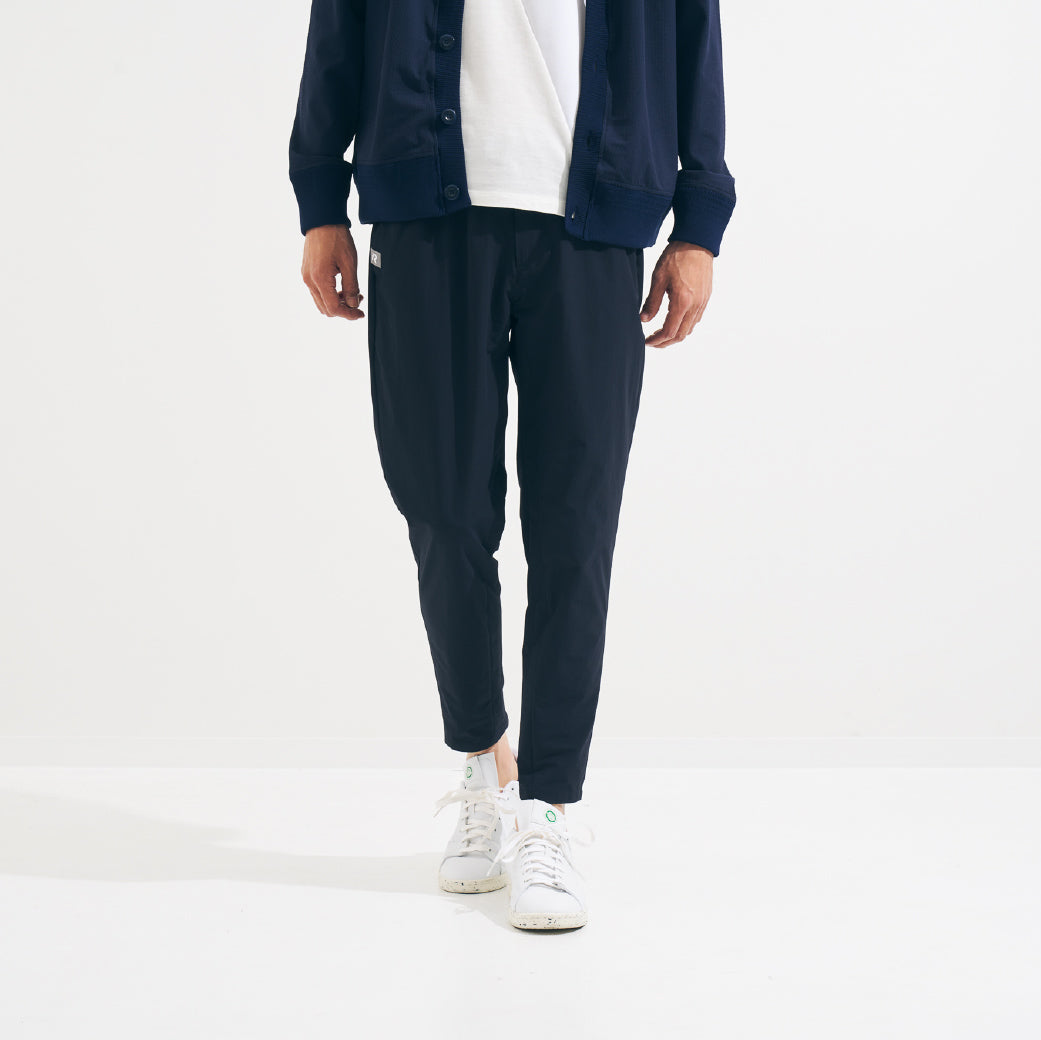 主素材には、①軽量 ②4WAYストレッチ ③吸汗速乾 ④シワになりにくい等の機能が備わったrue de R(ルードアール)定番素材である、タスランナイロンを使用したスポーティーカジュアルパンツ。
